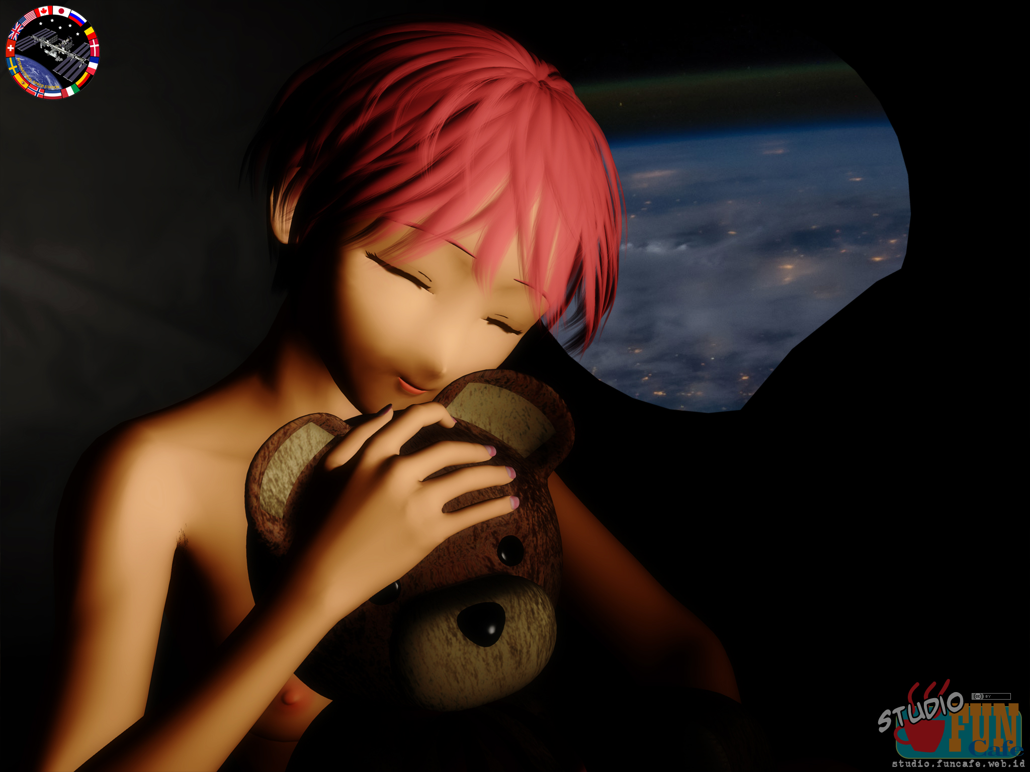 | Title: Zero Gravity Goodnight Finished: Desember 30, 2020 "No matter how far she travels in space, she's still a girl after all..." A serenity night in space. This one was different from previous works since it was rendered in realistic mode with IBL lighting. No post-work redraw, only tone adjust. |