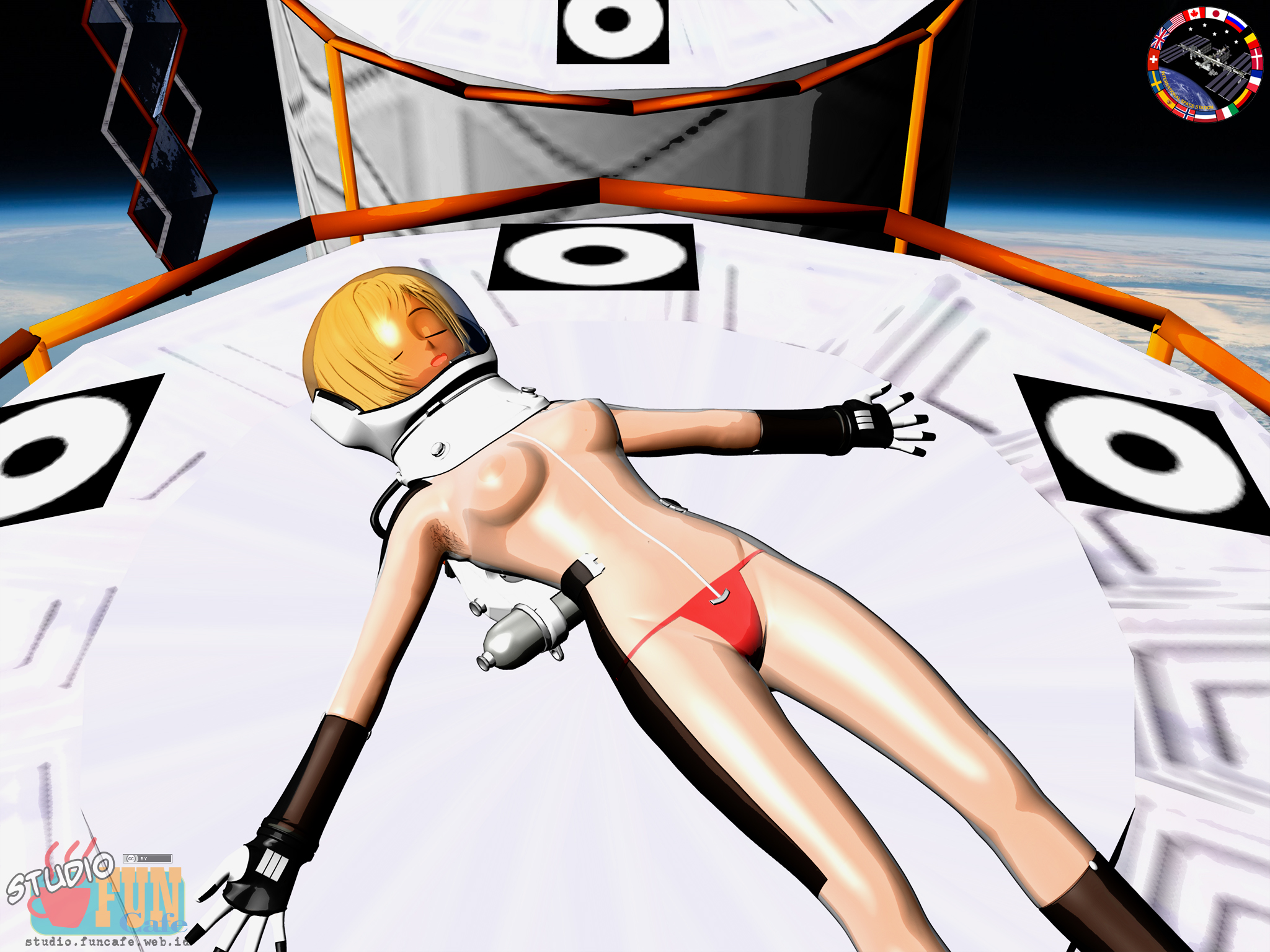 | Title: Zero Gravity Sunbathing Finished: February 02, 2021 In real life, this is not possible since sun ray in space are dangerous. In this scene, we assume that the space suit has adequate protection layer but still enable to provide UV for skin tanning. |