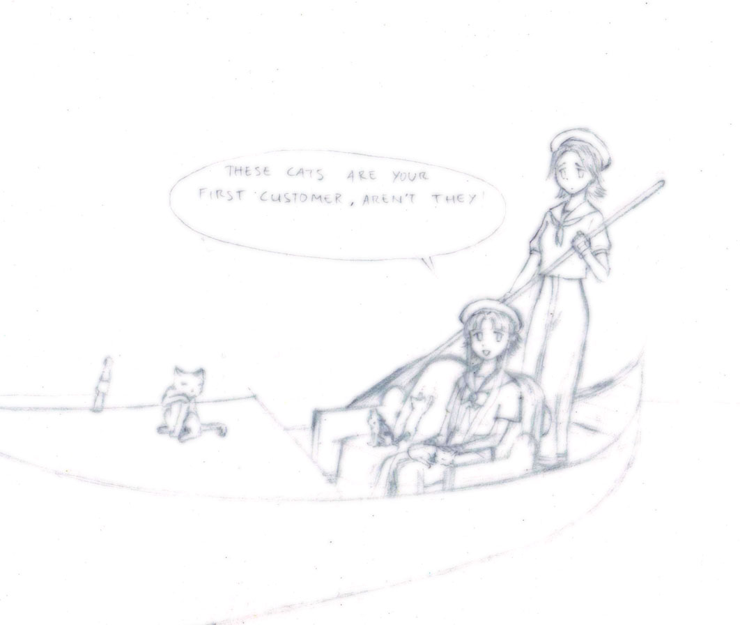 | Title: First Customer Creator: TGV Found in the hard disk of an old server, this picture more like a buried treasure to me. It was done by TGV, who I lost contact now. This image portrays my character Rin as a Neo-Venezia undine, taking advice from Akari. If anyone able to contact TGV, let me know. |