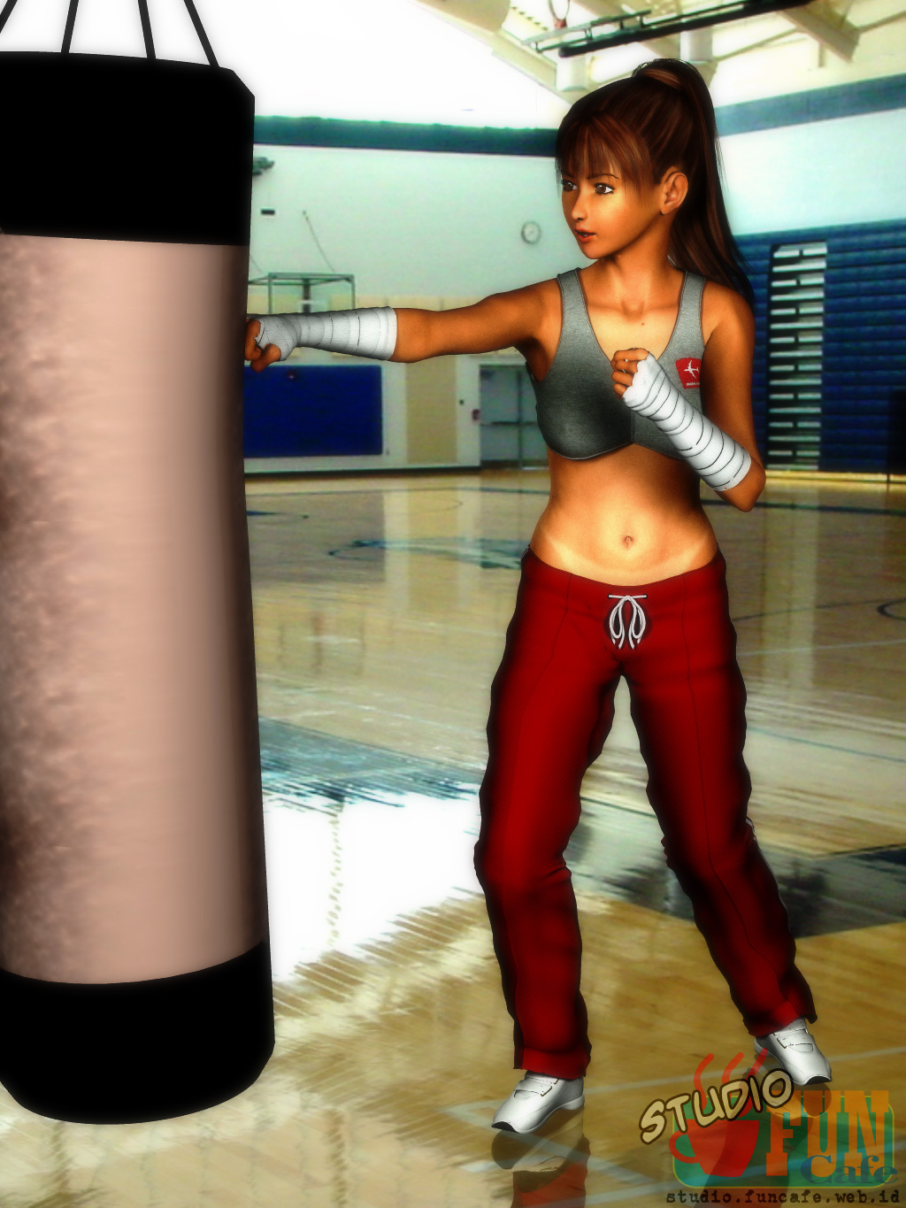 | Title: Punch! Finished: May 10, 2008 Made as request from friends at Indoflyer, Ismangun and Yongis. Hairstyle and outfit was Ismangun's request while props and pose was Yongis' request. I used Karin because her current hairstyle match the description. Initially I added some muscle on her but I got complain, so I reverted it to Karin's usual body. |