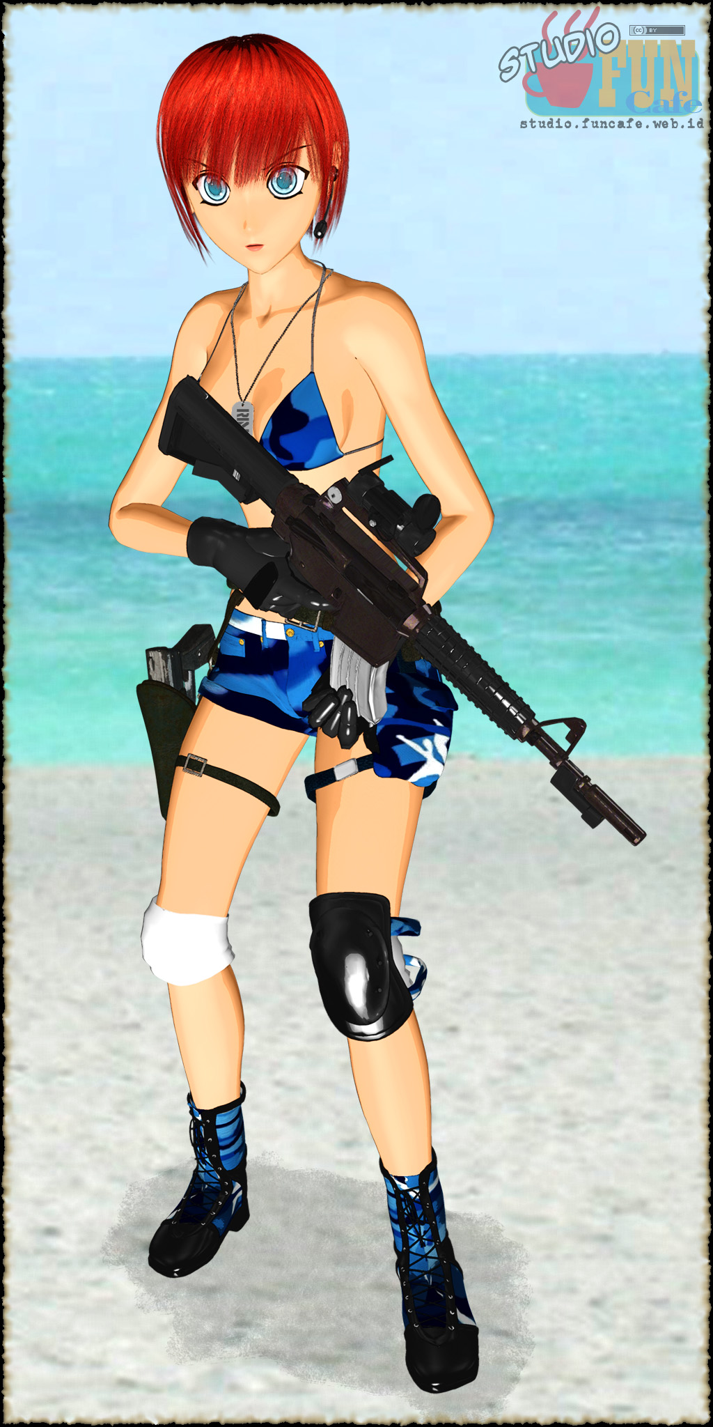 A girl with a big gun :) I'm using navy camo pattern because I use army camo too often on my artworks. Actually I also drew face camo but it turned out that it ruined her face, so I removed it.