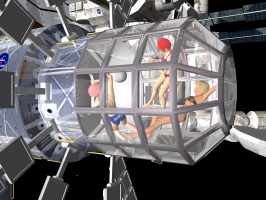 This would be the (fictional) future tourism module of the ISS. It has large observation windows so tourist can have a clear dramatic view of the earth. It can be used for recreational activities, but the activity like this one would not be recommended. Ball can move really fast in zero gravity, people may get hurt if being hit by the ball. In addition, the inertial force may push the person, adding risk of injury due to impact with wall or other object.