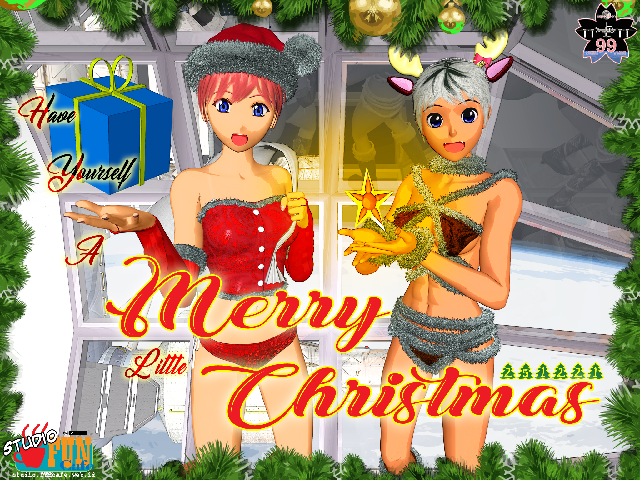This was made for Christmas card of 2021. Originally I planned to put 4 girls in the scene, but I dropped the idea and used only 2. The other 2 will be planned for the New Year card instead.