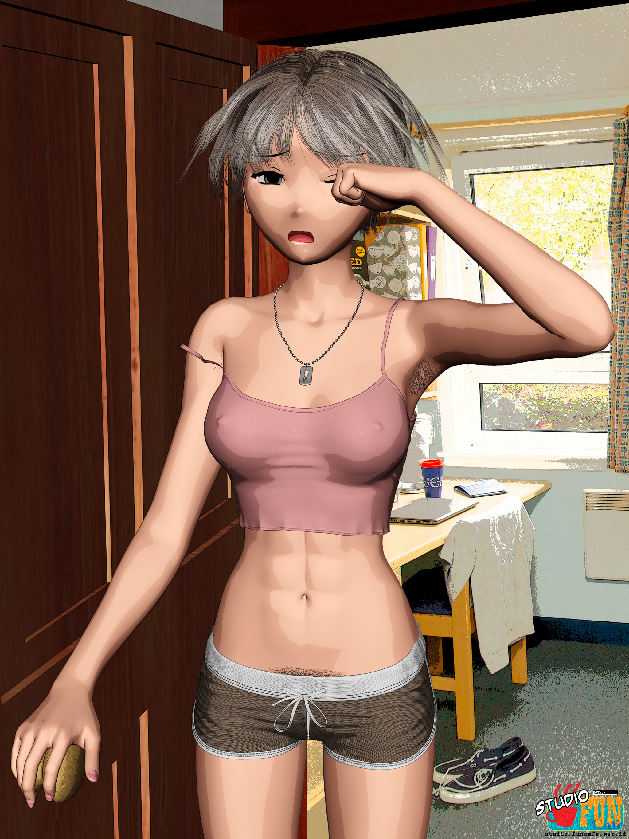 | Title: Good Moooning... Finished: February 17, 2024 She is still sleepy when she came out form her room defenselessly without realizing that her room wear was too provocative. I guess she is not a morning person. |