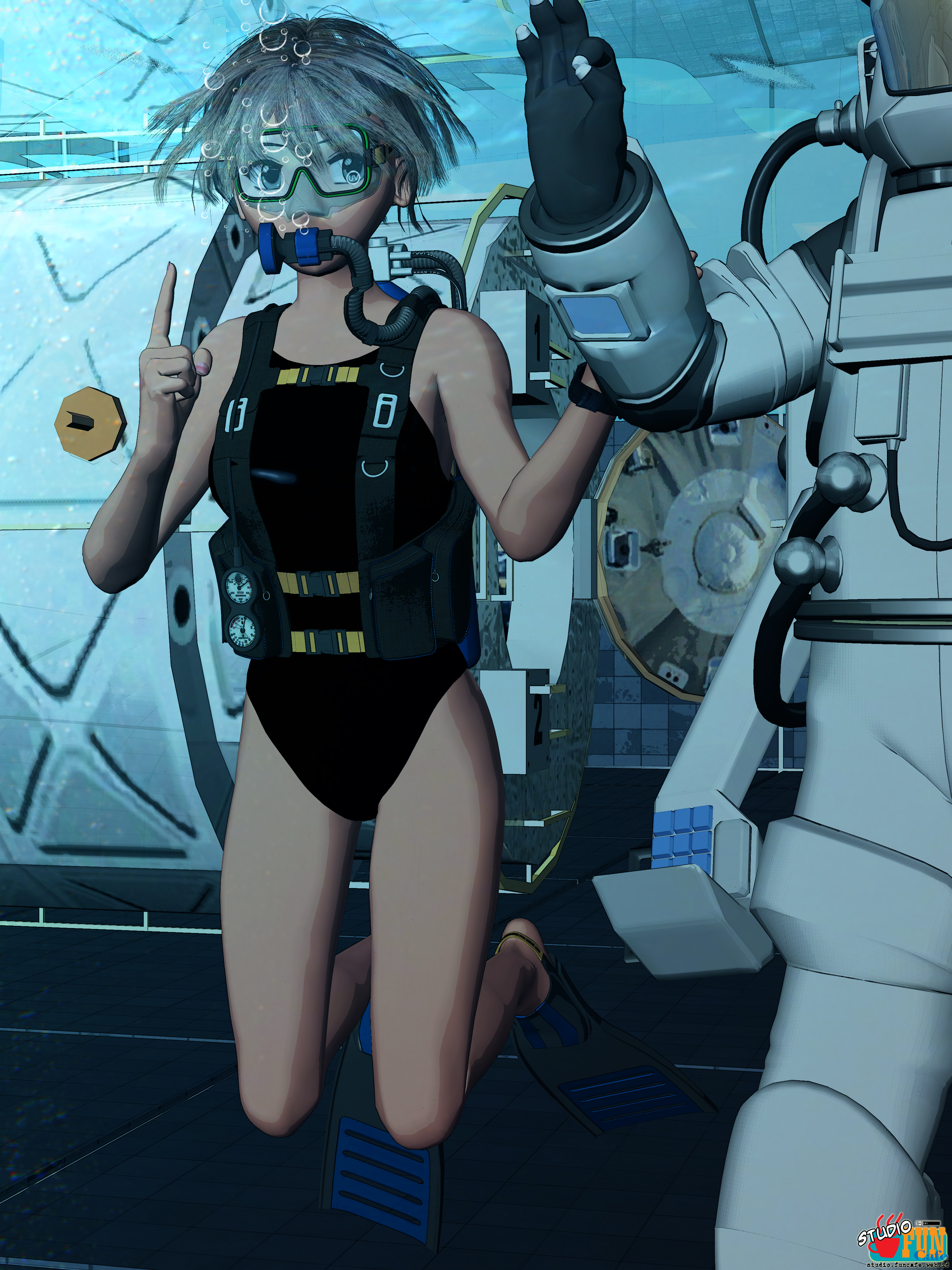 | Title: Neutral Buoyancy Support Driver Finished: March 08, 2024 On neutral buoyancy pool at Neutral Buoyancy Lab (NBL), astronaut usually accompanied by support diver. This diver monitor the astronaut and also provide support during the training mission. Should there be a problem arise, the diver should act to prioritize the safety of the astronaut. After she obtanied her diving license, she's assigned as support diver to an astronaut on training. Soon, she will dive in a spacesuit also. The hand gesture that she and the astronaut made were special gesture used only during mission on NBL. |